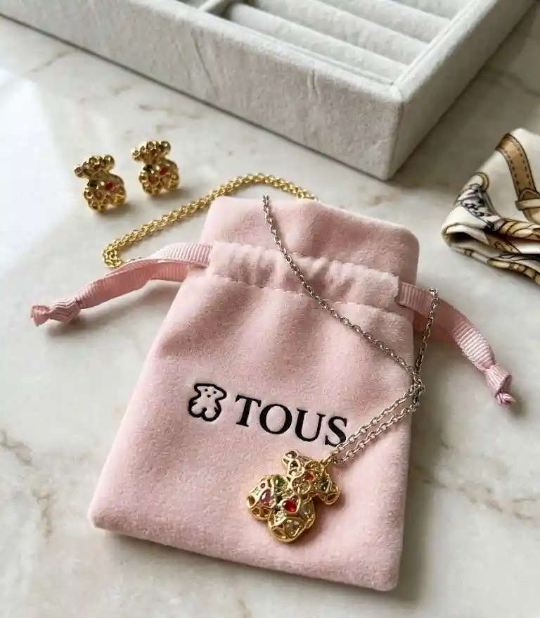 Trio Plata Ley 925 Oso Dorado Doble Con Corazones Multicolor + Bolsa De Lujo ✨🐻💖 Un set encantador elaborado...Ver más