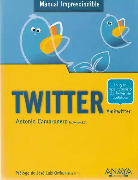 Los tiempos y las formas de consumir la información están cambiando. Twitter, con cerca de 200 millones de usuarios en todo el mundo, se ha convertido en un instrumento necesario y poderoso para entender la comunicación e impulsar los más diversos movimientos sociales.Este Manual Imprescindible es el recurso ideal para aprender a utilizar Twitter rápidamente y desde cero, tanto en la Web como en los dispositivos móviles. Proporciona, además, trucos y herramientas, así como pistas para emplear Twitter en la estrategia de social media de cualquier negocio.Y como los protagonistas en las redes sociales son las personas, aquí encontrará también una panorámica del mundo hispano de twitteros, como Yoani Sánchez desde Cuba o Gustavo Arizpe desde México. En definitiva, ésta es la guía más sencilla y práctica tanto para iniciarse en las redes sociales y Twitter, como para profundizar en el apasionante mundo del social media.Este Manual Imprescindible es el recurso ideal para aprender a utilizar Twitter rápidamente y desde cero, tanto en la Web como en los dispositivos móviles. Proporciona, además, trucos y herramientas, así como pistas para emplear Twitter en la estrategia de social media de cualquier negocio.Y como los protagonistas en las redes sociales son las personas, aquí encontrará también una panorámica del mundo hispano de twitteros, como Yoani Sánchez desde Cuba o Gustavo Arizpe desde México. En definitiva, ésta es la guía más sencilla y práctica tanto para iniciarse en las redes sociales y Twitter, como para profundizar en el apasionante mundo del social media.Y como los protagonistas en las redes sociales son las personas, aquí encontrará también una panorámica del mundo hispano de twitteros, como Yoani Sánchez desde Cuba o Gustavo Arizpe desde México. En definitiva, ésta es la guía más sencilla y práctica tanto para iniciarse en las redes sociales y Twitter, como para profundizar en el apasionante mundo del social media.