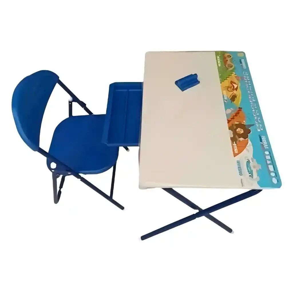 Empaque de regalo sin costo adicional, escríbenos al finalizar la compra. 2 años + Este práctico set infantil incluye un tablero plegable, silla resistente y bandeja lateral para organizar útiles escolares. Ideal para estudiar, dibujar o jugar en casa, ofrece un espacio cómodo y seguro para las actividades diarias. Su estructura metálica y superficie fácil de limpiar lo hacen duradero y funcional. Además, es plegable, lo que permite guardarlo y transportarlo sin ocupar mucho espacio. Perfecto para fomentar la organización y el aprendizaje desde temprana edad. Tamaño: 60x 57x 40cm