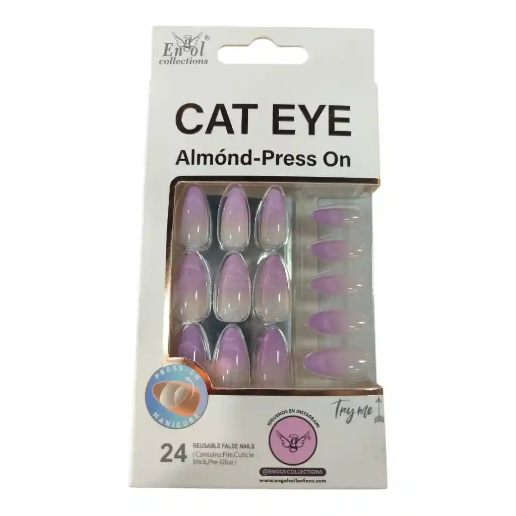 Engol collections 12 modelos diferentes Reaiza la compra y por chat se envia las fotos de los modelos disponibles CAT EYE Almond - Uñas Press On (de presión) Método correcto Elija la lámina adhesiva adecuada Presione firmemente Lime los lados para un mejor ajuste PREPARACIÓN: Limpie las uñas con removedor de esmalte y lave bien las manos con jabón seleccione el tamaño correcto de uña para cada dedo y colóquelas en orden. Las uñas están numeradas en la parte inferior. APLICACIÓN CON ADHESIVO (TABS): Las uñas y las láminas adhesivas tienen tamaños correspondientes. Seleccione la lámina adhesiva que coincida con el tamaño de la uña elegida y retírela de la hoja. Aplique la lámina adhesiva sobre la uña natural, presione y alise retire la película protectora. Alinee la uña con la cutícula y presione firmemente comenzando en el centro, luego en cada lado. CONSEJO EXPERTO: Para una mejor duración, presione las uñas varias veces evite el contacto con agua durante la primera hora. RETIRO: Aplique removedor de esmalte alrededor de los bordes, espere 1 minuto y retire suavemente la uña desde los lados. Método correcto Aplicar pegamento Presionar firmemente Limar los lados para mejor ajuste APLICACIÓN CON PEGAMENTO: Aplique pegamento en la parte posterior de la uña artificial. Aplique pegamento en la uña natural. Alinee con la cutícula, presione suavemente y mantenga durante 5 segundos. CONSEJO EXPERTO: Aplique suficiente pegamento para evitar burbujas de aire, asegurar la adhesión y prolongar la duración. RETIRO: Corte y lime la superficie para romper la capa protectora. Remoje las uñas en removedor de uñas artificiales o acetona hasta que se ablanden. Limpie las uñas suavizadas y el pegamento. No fuerce ni arranque las uñas. ADVERTENCIA: PELIGRO: CIANOACRILATO. Se adhiere a la piel y a los ojos en segundos. Mantener fuera del alcance de los niños. Puede causar irritación en la piel. Causa irritación ocular grave. Puede causar irritación respiratoria. Mantener alejado de los ojos. EN CASO DE CONTACTO CON LOS OJOS: Enjuagar cuidadosamente con agua. Buscar atención médica. Usar solo según las indicaciones. Lavar la piel si ocurre contacto accidental.