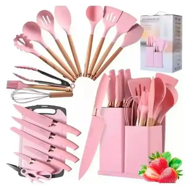 ¡Descubre la excelencia en la cocina con nuestro Set de Utensilios de Cocina de 19 Piezas! Diseñado para hacer que cocinar sea más fácil y divertido que nunca, este set es la elección perfecta para cualquier cocinero apasionado. Aquí te presentamos todas las razones por las que este set es esencial en tu cocina: 19 Piezas en un Solo Set: Con 19 utensilios de cocina diferentes, tendrás todo lo que necesitas al alcance de tu mano para preparar comidas deliciosas y variadas. Super Resistente al Calor: Nuestros utensilios están diseñados para soportar altas temperaturas sin deformarse ni dañarse, lo que los hace ideales para todas tus preparaciones culinarias, desde saltear hasta asar. Antiadherente de Primera Calidad: La superficie antiadherente de estos utensilios facilita la cocción y la limpieza. Olvídate de la comida pegada y disfruta de una cocina más saludable con menos aceite y grasa.