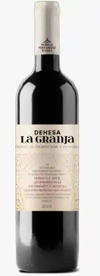Vino Dehesa La Granja — elegante vino tinto español de la región de Castilla y León, elaborado con uvas **Tempranillo (100 %). Presenta un color rojo rubí intenso, aromas a frutas rojas maduras, notas tostadas y toffee de su crianza en roble americano, y una estructura equilibrada con taninos suaves. Ideal para acompañar carnes a la parrilla, estofados y quesos curados.