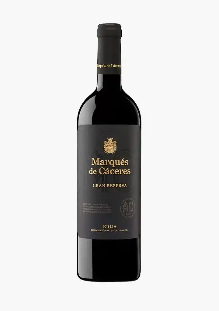 Marqués de Cáceres Gran Reserva — vino Gran Reserva español de la prestigiosa bodega Marqués de Cáceres (DOCa Rioja). 🍷 Un tinto clásico con crianza prolongada en barrica (roble francés) y botella, elaborado mayoritariamente con Tempranillo junto con pequeñas proporciones de Garnacha tinta y Graciano. Ofrece un perfil aromático complejo con frutas maduras, notas balsámicas y madera fina, taninos suaves y un final persistente, ideal para acompañar carnes rojas, caza y quesos curados.