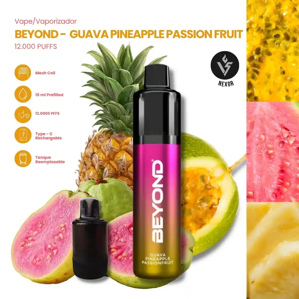 Una explosión tropical que combina la suavidad de la guayaba, la dulzura jugosa de la piña y el toque exótico del maracuyá. Un sabor equilibrado, fresco y lleno de energía que transporta a un ambiente tropical en cada inhalación. Características principales • Hasta 12,000 puffs en total (6000 + 6000 del tanque adicional) • Batería recargable • Puerto de carga Tipo C (rápido y práctico) • Sistema con tanque adicional incluido (extiende la duración) • Tecnología mesh coil (mejor sabor y vapor más uniforme)
