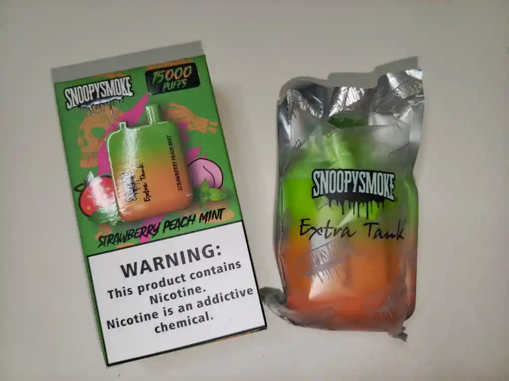 Cigarrillo electrónico recargable strawberry peach mint ( Combina lo dulce de la fresa y el durazno con la frescura helada de la menta). 15,000 puffs. Fácil uso.