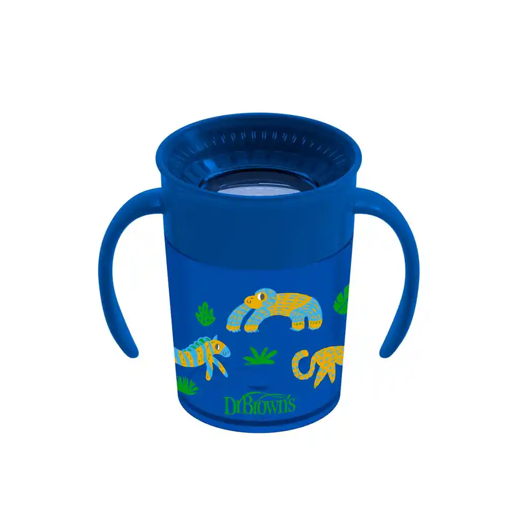Descubre el Vaso Cheers 360° antiderrames decorado con agarraderas de Dr Brown's, que hará que cada sorbo sea una aventura. Diseñado con agarraderas ergonómicas, este vaso es perfecto para acompañar el aprendizaje de tu pequeño sin preocupaciones de derrames. Su material resistente y 100% libre de BPA garantiza seguridad y durabilidad, mientras que su fácil limpieza y transporte lo convierten en el compañero ideal para cualquier ocasión. ¡Haz que la hora de beber sea divertida y sin complicaciones! Caracteristicas: Enseña habilidades de tomar como niño grande. ¡Brindemos por las transiciones a tazas de niños grandes! el Vaso Cheers 360° antiderrames decorado con agarraderas de transición sin boquilla con asas ayuda a hacer los hitos un éxito. Aprendizaje sin fugas. El Vaso Cheers 360° antiderrames decorado con agarraderas permite que el bebé beba desde cualquier lado del borde sin grandes derrames, gracias a la válvula de silicona transparente Sip-and-See sin fugas. Su diseño de una sola pieza hace que la limpieza y el montaje sea fácil Crece con el bebé. A medida que las habilidades de beber del bebé mejoran, simplemente retira la válvula y utilízala como una verdadera taza de niño grande. El Vaso Cheers 360° antiderrames decorado con agarraderas cuenta con asas para enseñar a las manos pequeñas habilidades de agarre y sorbo independientes. Fácil de transportar y traslúcida. Sabrás cuándo es el momento de un recambio debido al material translúcido del Vaso Cheers 360° antiderrames decorado con agarraderas, no es necesario verificarlo. Viene con una tapa fácil de transportar.