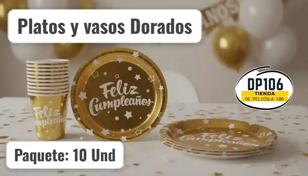 ¿Cómo pedir Vasos Y Platos De Cumpleaños Dorado X 10 Und en Rappi?