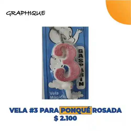 Vela #3 Para Ponque Rosada
