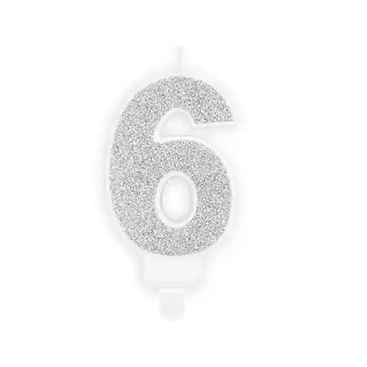 Velas para cumpleaños Color Plateado #6 Tamaño: 8 cm de alto 4.2 de ancho Vela Mágica. Disponibilidad inmediata