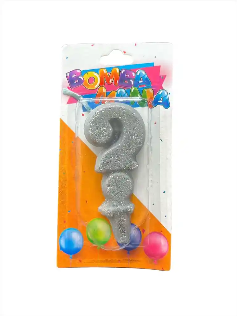 VELA PARA TORTA DE CUMPLEAÑOS DISEÑO SIGNO DE INTERROGACION COLOR PLATEADO