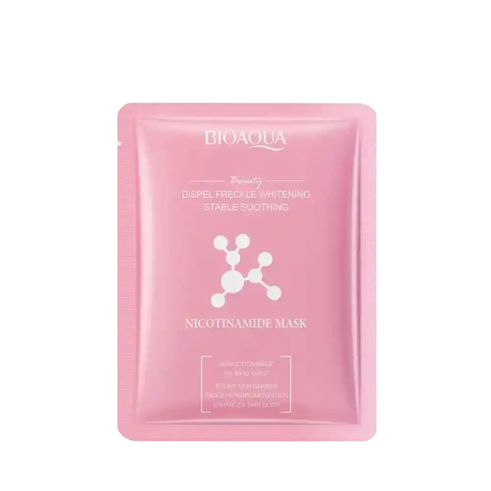 Somos LUNERA STORE BOGOTA una tienda donde encontrarás diversos productos para el cuidado diario de tu piel, maquillaje, así como accesorios para el cabello y complementos para tus rutinas de skin care. Envíos 100% seguros a nivel nacional. SI COMPRAS DIRECTAMENTE CON NOSOTROS, ¡LOS PRODUCTOS TE QUEDAN A PRECIOS MUCHOS MÁS BAJOS! Búscanos LUNERASTORECOM 1 Velo Facial Niacinamida Bioaqua. Contenido 30g. Beneficios: Es el tratamiento facial perfecto para pieles con tendencia acneica o con imperfecciones. Su fórmula enriquecida con niacinamida ayuda a reducir la apariencia de granos y marcas, mientras controla el exceso de grasa y minimiza la apariencia de los poros. Contiene niacinamida que aclara, blanquea y elimina manchas, acelera el metabolismo de la piel, promueve el desprendimiento de melanina, para que la piel recupere un estado saludable y juvenil de tersura y translucidez y firmeza. Ingredientes: agua, glicerina, pr trietanolamina, diazolidinilo, hidroxiacetofenona, metilparabeno disódico, celulosa, alantoína, aceite de ricino hidrogenado, hialuronato de sodio, yodopropinil butilcarbamato, fragancia, peg-10, polisorbato 60, fosfato disódico, fosfato de sodio, niacinamida, lisato de fermento de bifida Importante: Antes de usar, se recomienda probarlo en la piel, detrás de la oreja, si no se siente bien, deje de usarlo; 2. No apto para niños menores de tres años: 3. Manténgalo en un lugar fresco, evite las altas temperaturas y la luz solar directa; 4. Manténgalo fuera del alcance de los niños. Modo de uso: -Lávate muy bien el rostro. -Abre la mascarilla y cubra todo el rostro en forma de mascarilla. -Deja actuar unos 15 minutos. -Retira la mascarilla, masajea suavemente. NO SE RECOMIENDA REUTILIZAR EL VELO FACIAL