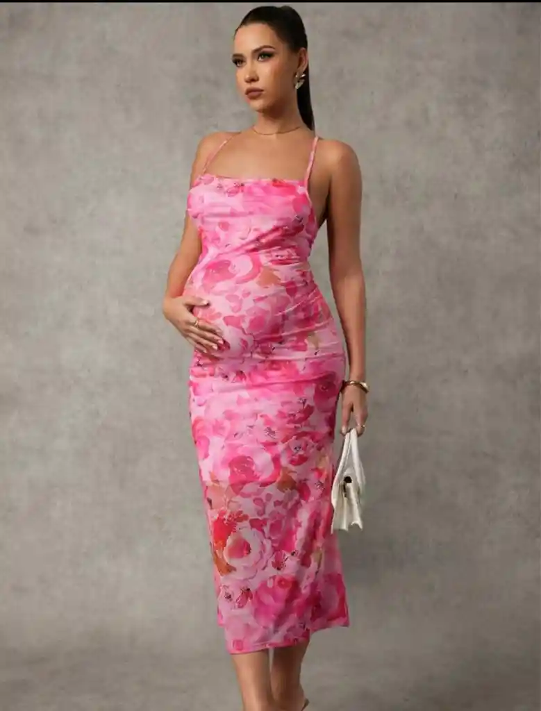 Resalta tu pancita con estilo 💕 Vestido ajustado en tela elástica suave que se adapta cómodamente a cada etapa del embarazo. Diseño floral femenino, tiras delgadas y largo midi ideal para eventos, baby shower o salidas especiales. ✔️ Tela fresca y cómoda ✔️ Ajuste perfecto al embarazo ✔️ Diseño moderno y elegante Siéntete linda y cómoda al mismo tiempo 🤰✨