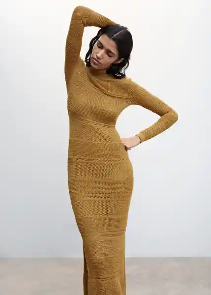 Abertura en la Espalda Cierre de Botones en el Cuello Cuello Perkins Diseño Largo Diseño Recto Forro Interior Manga Larga Tejido de Punto Calado - 47085852_31.