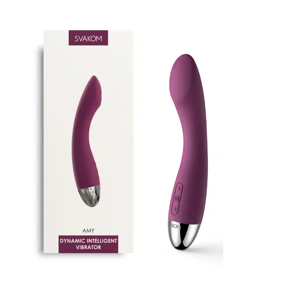 El vibrador Amy presenta un cabezal de presión plana para una estimulación intensa. Su diseño está optimizado para estimular tanto el punto G como el clítoris con facilidad. Ofrece 6 modos de vibración y 5 niveles de intensidad, incluyendo el modo inteligente SVAKOM, que simula el proceso completo del sexo desde los juegos preliminares hasta el clímax. Con un motor potente pero silencioso, Amy es ideal para usar en cualquier situación sin que nadie se entere. Su control intuitivo de tres botones permite ajustar fácilmente la vibración para un viaje sexual maravilloso. ¡Atrévete a sentir un nuevo nivel de placer! Características: • Vibrador de punto G • 5 + 1 modos de vibración • 5 niveles de intensidad • Modo inteligente Svakom • No interactivo con App • Color: Morado • Material: Silicona segura para el cuerpo • Medidas: Largo Total:17 Cm x Insertable: 6 Cm x Ancho : 3 Cm • Batería recargable por medio de cable USB tipo plug (Adaptador de corriente no incluido) • Tiempo de carga: 2.5 horas, Tiempo de uso: 4 horas • Resistencia al agua: IPX4: Protege de salpicaduras de agua, sin importar la dirección. No es sumergible • Garantía: 1 año Descúbrenos y descubre el placer y el bienestar No lo pienses y disfruta de grandes momentos. Limpieza: Antes de usar el juguete por primera vez, y después de cada uso, este debe ser limpiado para reducir el riesgo de infecciones, mantener la higiene adecuada evitara el deterioro rápido del juguete. Cuidado: Para una experiencia más placentera, es ideal que el uso de este juguete sea con lubricantes a base de agua. No se deben usar lubricantes de silicona con juguetes de silicona. Podrían sufrir daños irreversibles. Confidencialidad: Tu producto llega en empaque 100% discreto, cuidamos tu privacidad.