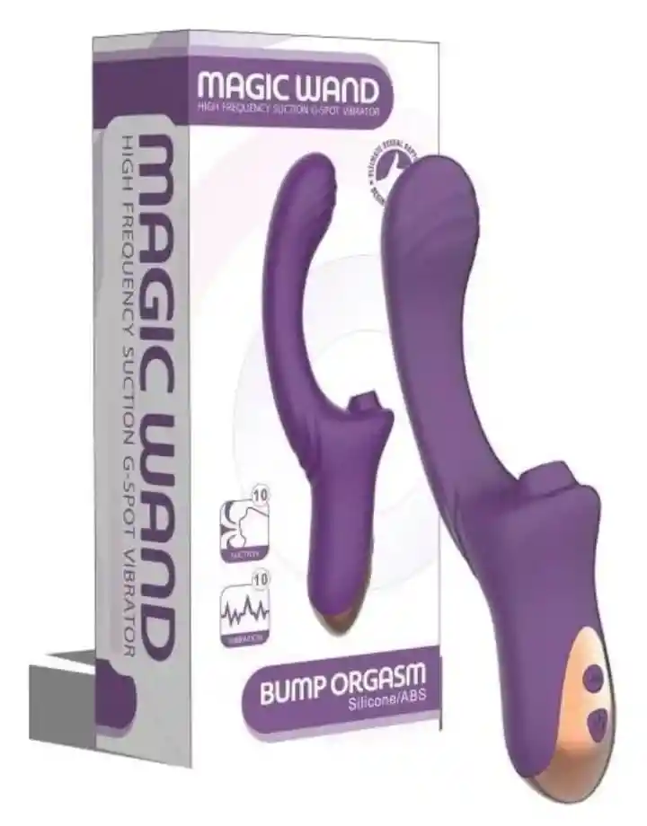 Vibrador estimulante Punto G con succión de clítoris de Alta frecuencia, 10 frecuencias de succión, 10 modos de vibración elaborado en Silicona de alta calidad ergonómico.