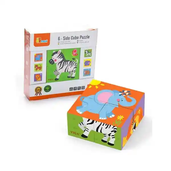 Contiene 4 Piezas. Cubos de Madera Que Forman Distintas Escenas de Animales Salvajes Del Zoo. Ideal Para Trabajar Combinaciones Reconocimiento de Animales y Coordinación Visomotora.