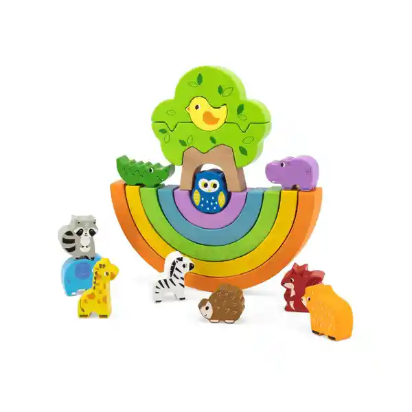 Conjunto de Bloques de Madera de Colores y Formas Irregulares Para Apilar y Equilibrar Creando Torres y Estructuras. Trabaja Pulso Concentración y Creatividad en Niños a Partir de 3 Años.