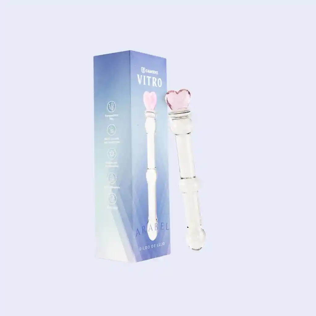 Características del Producto Elegancia y Distinción: Diseño sofisticado con una punta en forma de corazón, que añade un toque de elegancia y hace que el Dildo de Vidrio Arabel sea una pieza única en tu colección. Experiencia Sensorial Avanzada: Con su vidrio transparente y tres bolas estratégicamente colocadas en el lado insertable, proporciona una sensación única y estimulante. Juego con Temperaturas: Experimenta con temperaturas sumergiéndolo en agua caliente o fría para añadir una dimensión adicional a tus juegos íntimos. Arte del Placer: Un deleite tanto para la vista como para el cuerpo, elevando tu experiencia íntima a nuevas alturas. Uso y Recomendaciones Lubricantes Recomendados: Usar con lubricantes a base de agua para una experiencia más placentera, como el Gel Lubricante Íntimo Natural Elixir. Evitar lubricantes de silicona con este producto. Limpieza del Producto: Limpiar antes del primer uso y después de cada uso. Se recomienda el Limpiador para Juguetes de Elixir para una limpieza óptima. Especificaciones Técnicas Medidas: Alto: 17 cm; Profundidad: 2.2 cm Peso: 92 gr Resistente al Agua: Sí Garantía Duración de la Garantía: 1 año