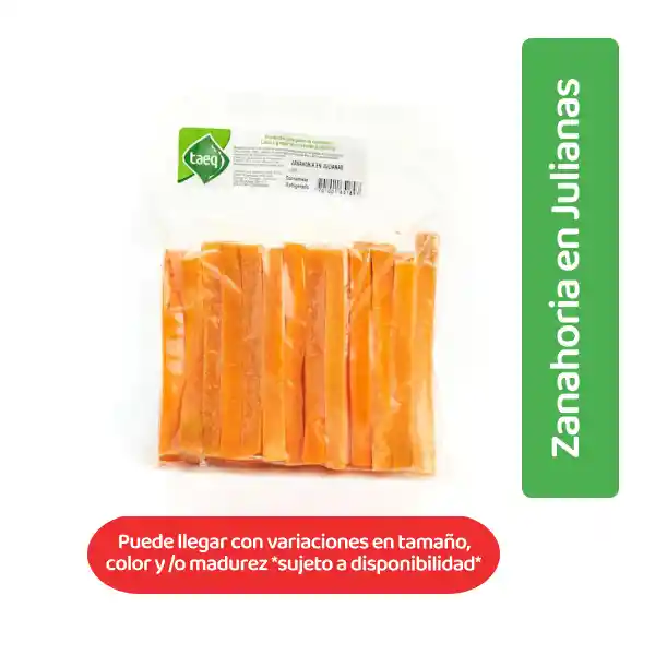 Zanahorias frescas en julianas listas para consumir, ricas en vitaminas y minerales.