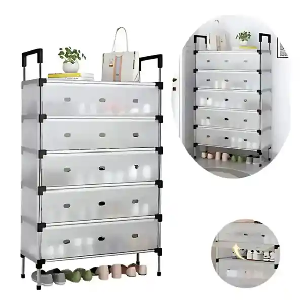 Este zapatero ofrece gran espacio de almacenamiento para organizar perfectamente tus zapatos. Es ideal para satisfacer tus necesidades de almacenamiento en diversos entornos de tu hogar. ¡Lucirá increíble en tu dormitorio! Cuenta con una estructura de acero de plástico mejorada, de alta resistencia y estabilidad. Sin deformación, duradero y libre de óxido. Además, cuenta con una cubierta plastificada en cada uno de sus 6 niveles que es a prueba de humedad y polvo, de esa forma, tus zapatos permanecerán limpios todo el tiempo.