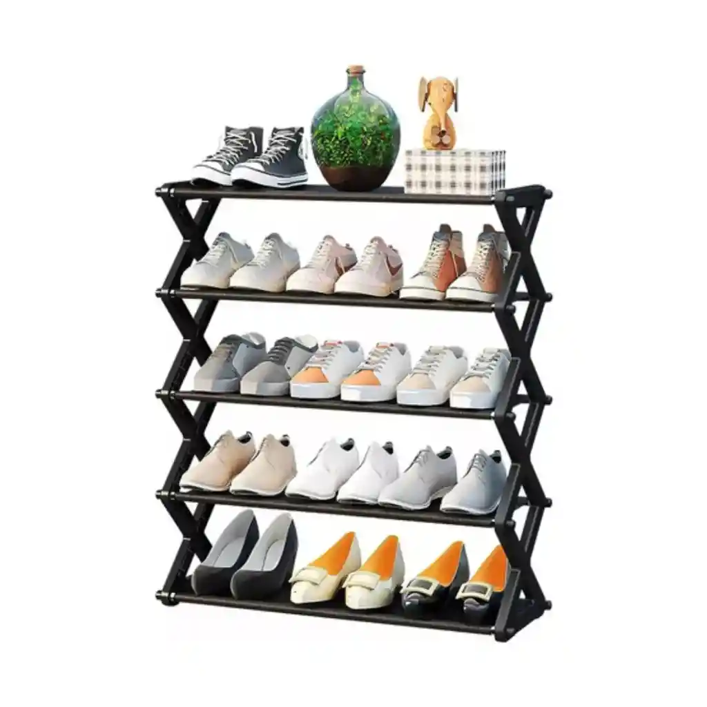 CARACTERISTICAS: -Diseño con un toque practico -Ligero y fácil de mover -Adecuado para ser colocado en cualquier espacio de tu Habitación. -Fácil de instalar, no se requieren herramientas. -Se adapta fácilmente para poder colocar botas. -Material: Tubo de acero, junta de plástico. Tamaño de montaje: Altura : 65 cm Largo : 43 cm Fondo : 20 cm *INCLUYE: -1 zapatero 5 niveles -Caja de empaque